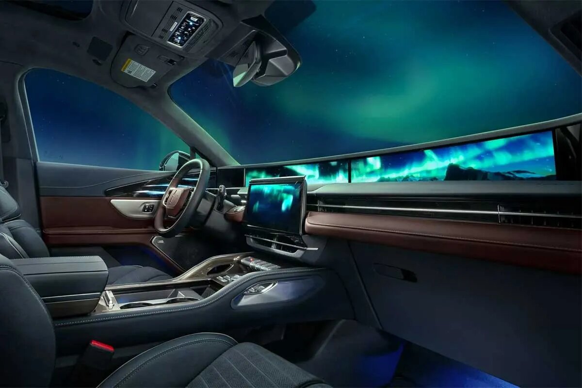 برای ایجاد تضاد و افزودن به حس لوکس بودن، از جزئیات مسی، تزئینات چوبی و همچنین رنگ قرمز تیره در بخشهایی از داشبورد، پنل درها و فرمان استفاده شده است؛ اما جادوی اصلی اینتم در بخش دیجیتال آن نهفته است. نمایشگرهای عریض کابین میتوانند الگوها و رنگهای رقصان شفق قطبی را به نمایش بگذارند. این ویژگی در حالت Lincoln Rejuvenate برجستهتر میشود؛ حالتی که با فعالسازی آن، صندلی راننده به عقب حرکت میکند، ماساژور و گرمکن فعال میشوند و نمایشگرها با تصاویر آرامشبخش شفق قطبی، فضایی بینظیر برای استراحت خلق میکنند.