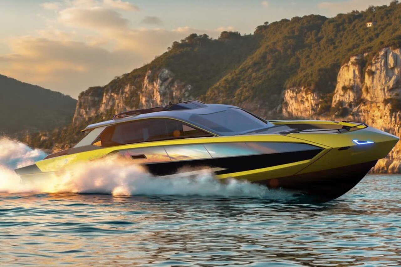 لامبورگینی در دههی ۱۹۸۰ تجربهی ساخت موتورهای قایق V12 را داشت، اما همکاری جدید با برند Tecnor کاملاً متفاوت است. این پروژه بیشتر تمرین طراحی درنظر گرفته میشود که زبان بصری خودروهای سوپراسپرت لامبورگینی را به ابعاد یات عظیم منتقل میکند. نتیجه قایقی است با خطوط تیز و زاویهدار که محصولات جادهای این برند ایتالیایی را بهیادمان میاندازد.