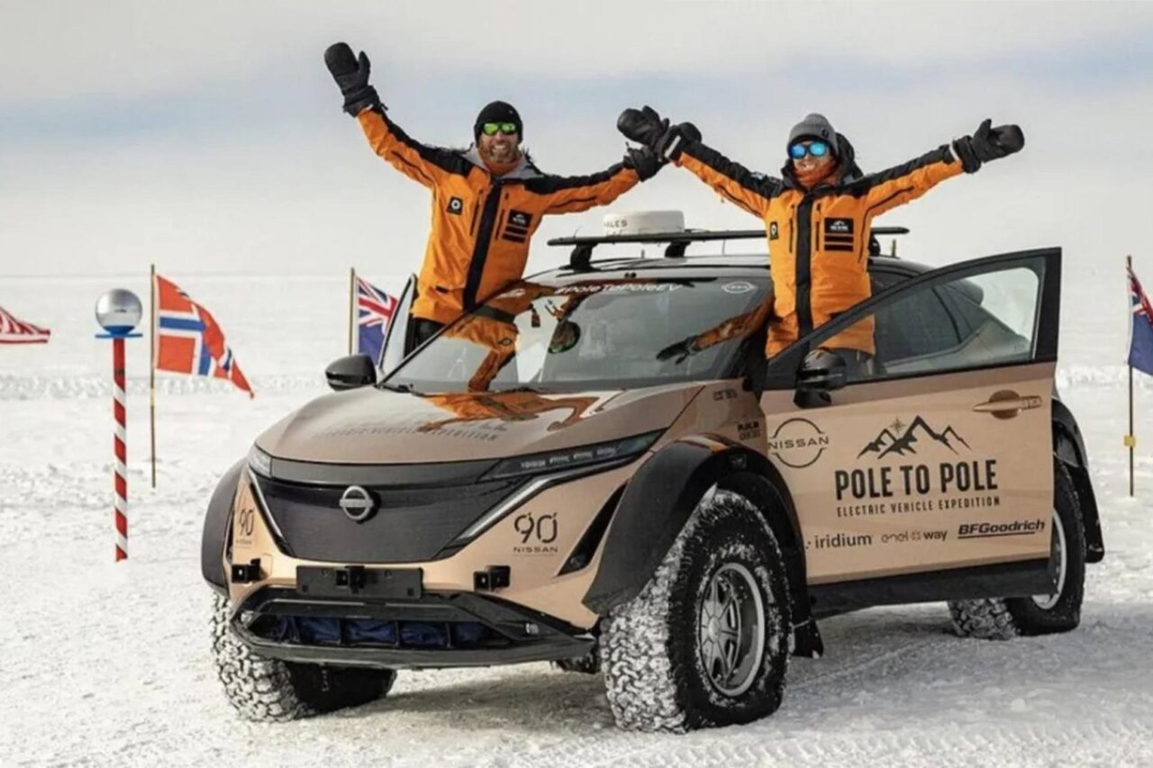 کریس و جولی رمزی اسکاتلندی اوایل امروز سرانجام موفق شدند پایان اکتشاف ۹ ماههی خود را با سفری ۱۷ هزار مایلی (حدود ۲۷٫۳ هزار کیلومتر) از قطب شمال تا قطب جنوب اعلام کنند و به اولین کسانی تبدیل شدند که چنین مسیری را با خودرو الکتریکی رانندگی کردهاند. این زوج درواقع ۱۵ دسامبر (۲۴ آذر ۱۴۰۲) به مقصد رسیدند اما پس از برقراری مجدد اتصال ماهوارهای توانستند خبر مذکور را بهاشتراک بگذارند.